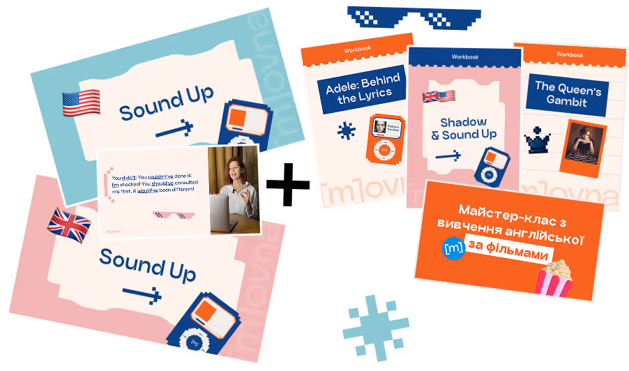 Всередині: Курс Sound Up + воркбуки Shadow & Sound Up, британська англійська з піснями Adele та серіали – щоб вухо звикало до живої мови 🧡