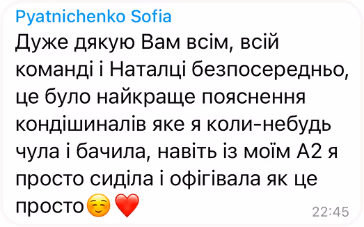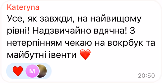 — Після оплати ви отримаєте доступ автоматично: потрапите в Telegram-бот, де і проходитиме наш інтенсив. Цього не має статися, але якщо виникнуть труднощі з отриманням доступу — feel free написати нам у телеграм ми на звʼязку