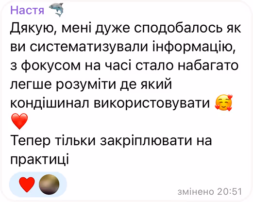 — Назавжди. Усі відео, конспекти та вправи залишаться з вами навіть після завершення курсу. Повернутись до тем, освіжити знання чи пройти повторно — зможете в будь-який момент